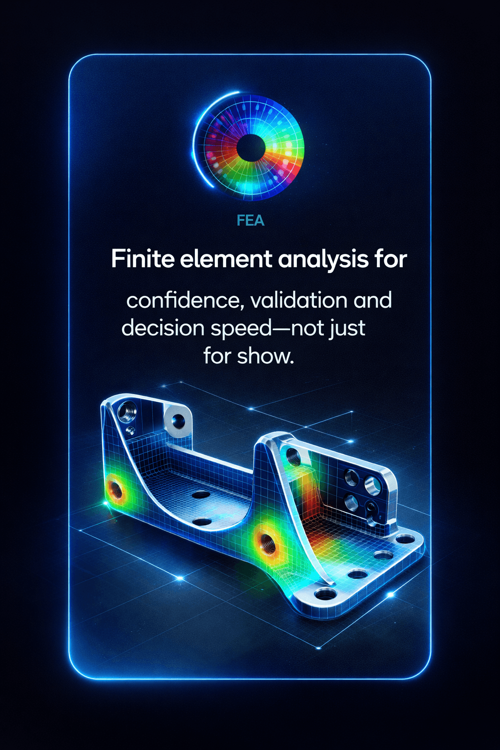 FEA is deployed only where it improves design confidence and reduces risk of redesign. Our SolidWorks expertise covers large modular assemblies and sophisticated structures.